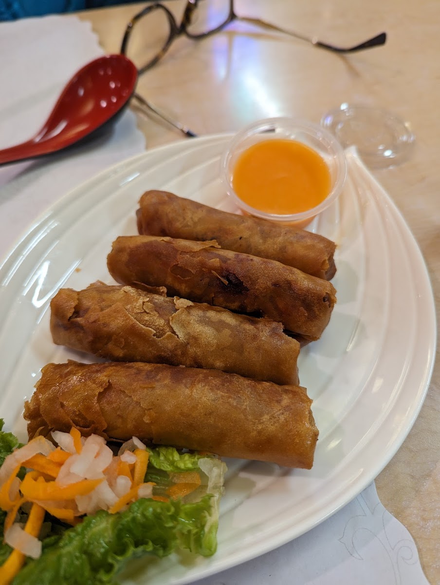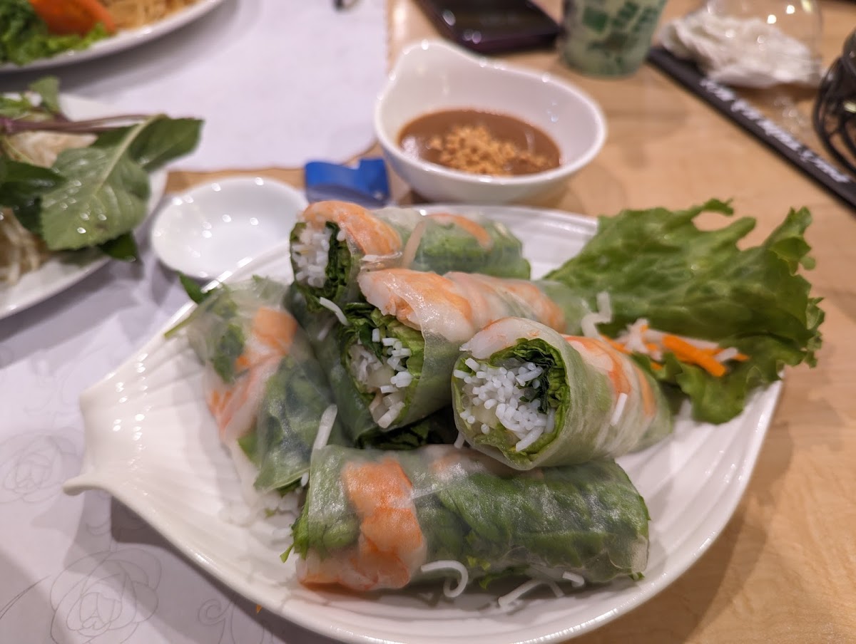 The menu offers classic Vietnamese dishes beyond pho, including crispy egg rolls, spring rolls (gỏi cuốn), and unique options like the broken rice combinations featuring various meats and tofu, which mirror traditional Hanoi street food experiences. The iced coffee also serves as a refreshing complement to the sometimes savory-rich dishes.